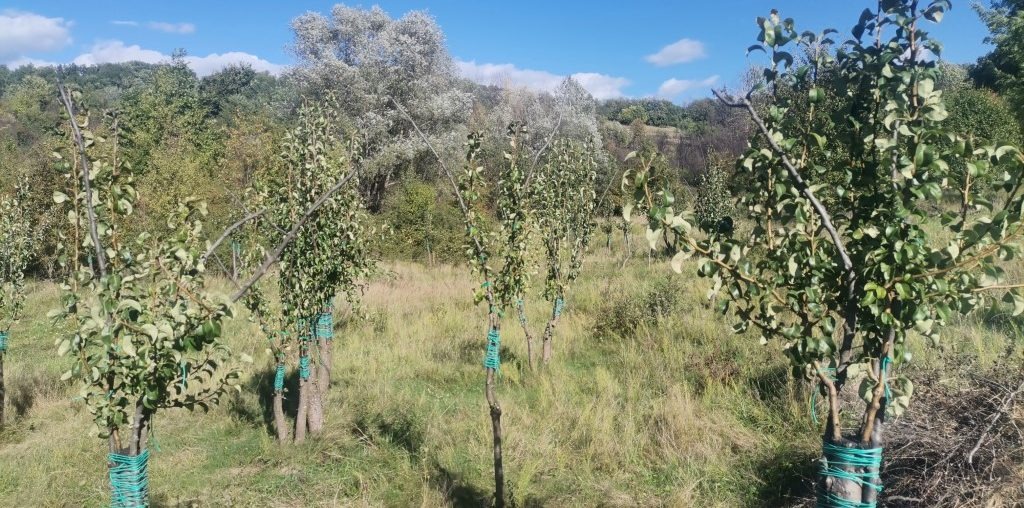 Am mărit astă primăvară livada cu un teren pe care au fost alunecări de teren și care apoi a fost invadat de peri sălbatici. Am eliminat rugii, porumbarii și măceșii, iar perii i-am altoit. Am avut și câțiva meri sălbatici altoiți, dar perii au fost majoritari și au crescut cel mai bine după altoire.